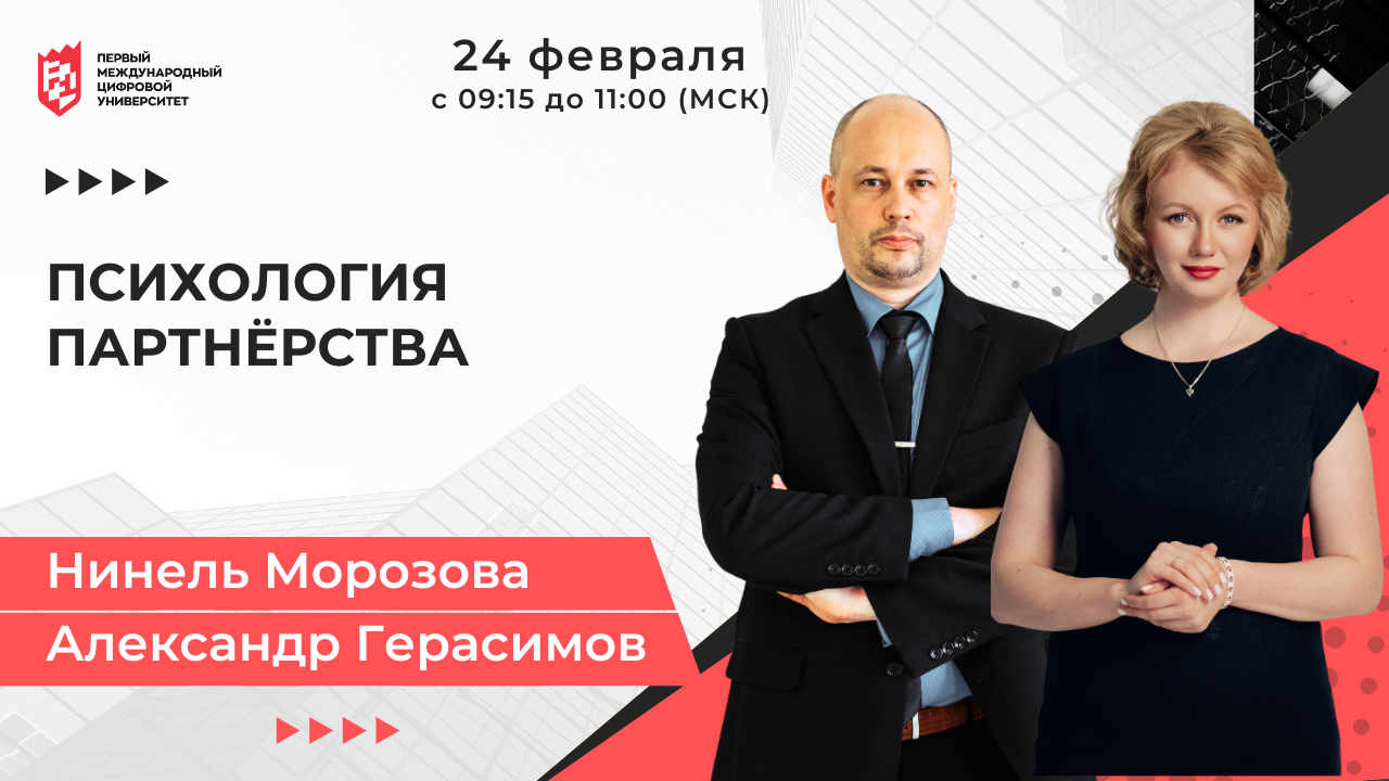 24 февраля в 9:15 по мск в рамках Бизнес клуба пройдёт онлайн-встреча с ректором Первого международного цифрового университета Нинель Морозовой и бизнес-психологом Александром Герасимовым.